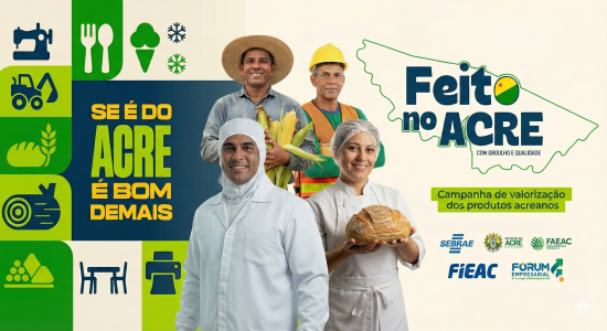 Fonte: Fórum Empresarial de Inovação e Desenvolvimento O Fórum Empresarial do Acre, a Federação das Indústrias do Estado do Acre (FIEAC), a Federação da Agricultura e Pecuária do Acre (FAEAC) com apoio do Sebrae/AC realizam no próximo dia 12 de dezembro, o lançamento oficial da campanha “Feito no Acre”, uma iniciativa que valoriza a produção […]