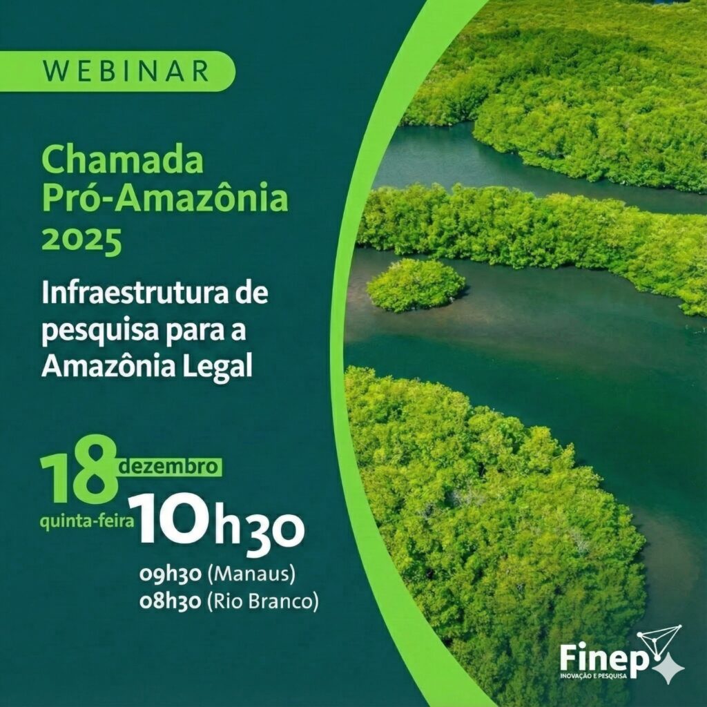 A FINEP lançou a Chamada Pró-Amazônia 2025, exclusiva para instituições da Amazônia Legal, com foco em infraestrutura de pesquisa.