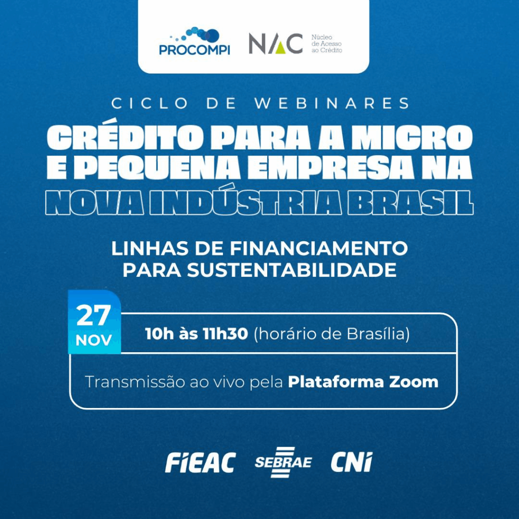 Participe do webinar gratuito da CNI + Sebrae: 📌Linhas de Financiamento para Sustentabilidade em Micro e Pequenas Empresas na Nova Indústria Brasil